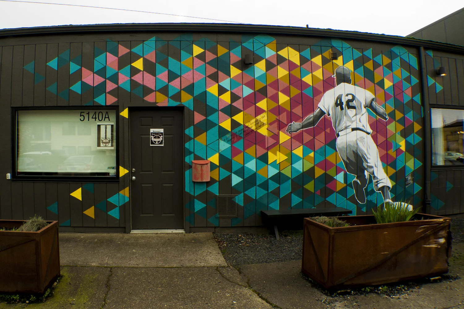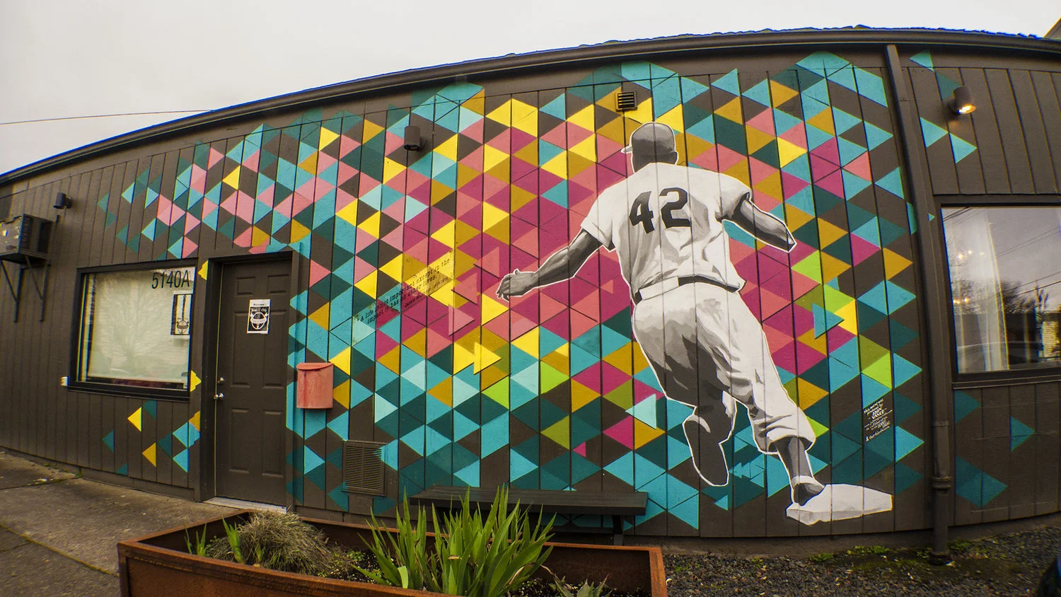This portrait of JACKIE! ROBINSON was commissioned by OUR 42nd Avenue : community-serving employment and economic development organization on NE 42nd ave at Emerson st.